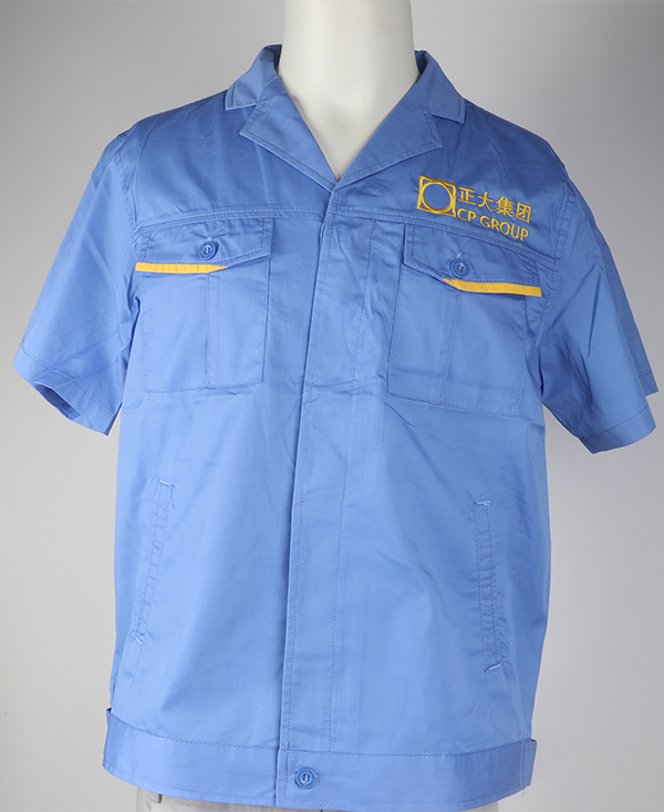這次給正大集團制作的夏季工作服,主色調采用了淺藍色,考慮天氣因素,這個顏色清透簡潔,布料采用的是透氣吸汗,易于熨燙,舒適美觀的滌棉細斜紋,性價比也相對較高,款式才用西服領和傳統工裝相結合,顯得時尚美觀。